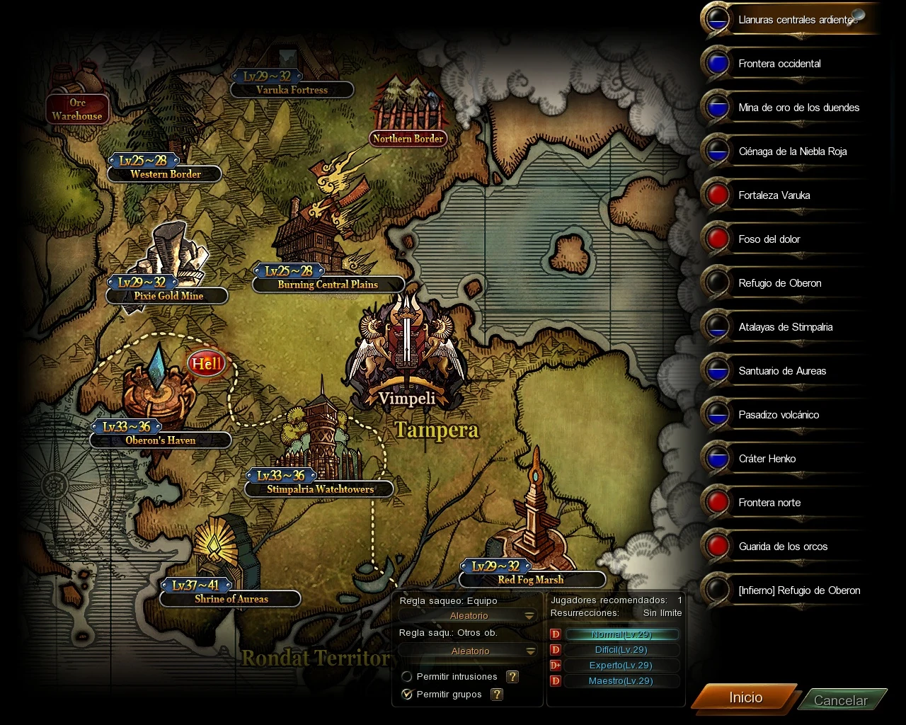 Este continente tiene el Reino de Tampera y Castillo Vimpeli. Vimpeli está rodeado de la meseta central, la frontera occidental, la mina de oro del duendecillo, varuka Fortaleza, Red Fog Marsh, Refugio de Oberon, el Santuario de Aureas, el paso inferior isla volcánica, y Henko cráter.